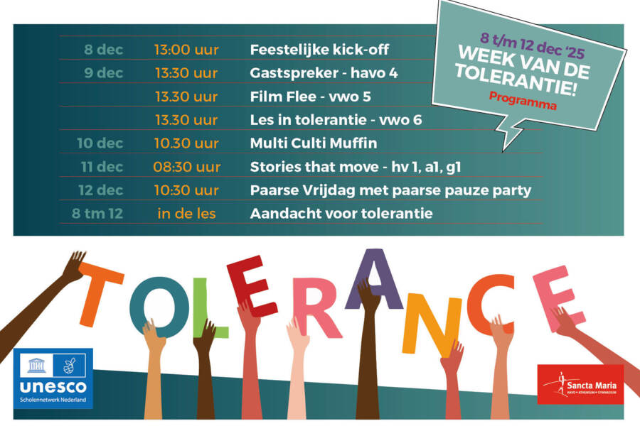 In de week van 8 december tot en met 12 december is er een mooi programma georganiseerd voor de 'Week van de tolerantie'.